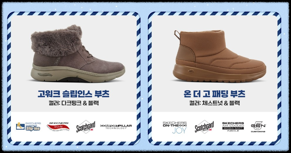 스케쳐스 윈터 겨울 부츠 디자인도 이쁘지만 보온력도 좋을것 같아서 관심이 많이 가는 제품입니다. 이벤트를 너무 늦게 알게 되었지만 그래도 용기를 내어 응모해 보시기 바랍니다.